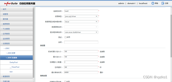 先将数据库驱动包放在/opt/InforSuite-StE-9.1B050000/as/lib下,启动AS。输入http://ip:8060访问AS管理工具,点击资源管理-JDBC-JDBC连接池-新建: