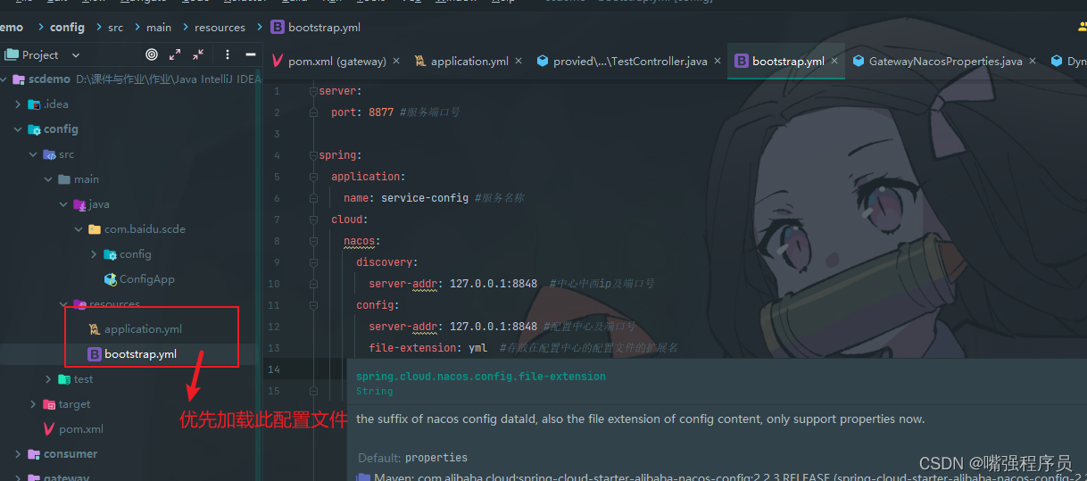bootstrap 加载优先于 applicaton。bootstrap 主要用于从额外的资源来加载配置信息。