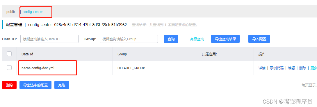 1)在配置中心中创建一个新的配置文件,并指定分组,dataId的规则同上。