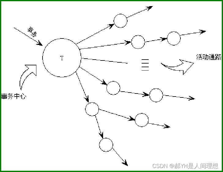 事务流 信息沿输入通路到一处理,由处理根据输入信息类型在若干动作序列中选一个执行。