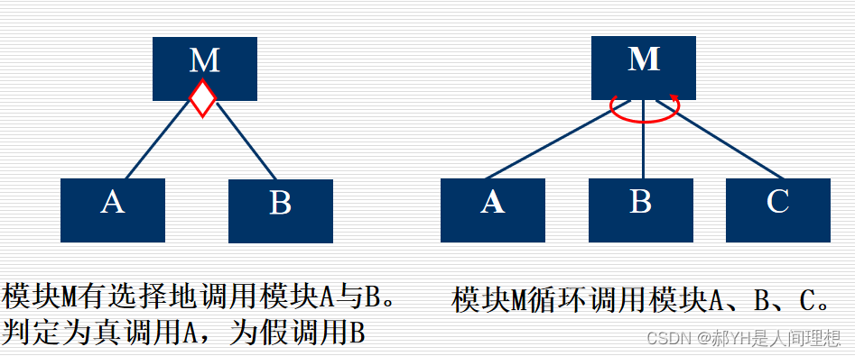 - 扇入: 有多少上级模块直接调用它,越大共享该模块上级模块越多(扇出扇入不合适改善)