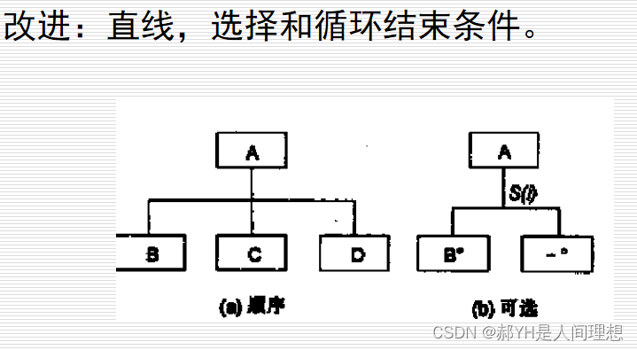 缺点: (1)不是逐步求精好工具,过早考虑控制流程, 非整体结构;