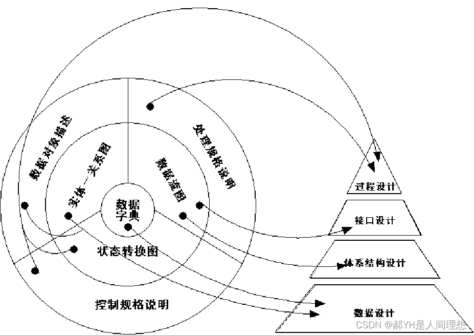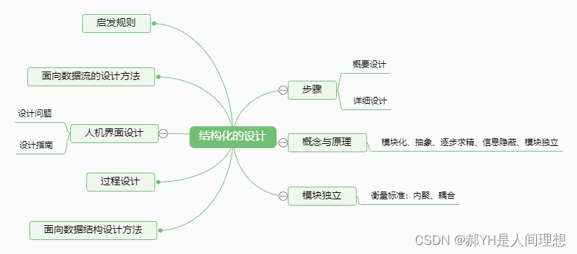 - 概要设计: 将软件需求转化为数据结构和软件系统结构。