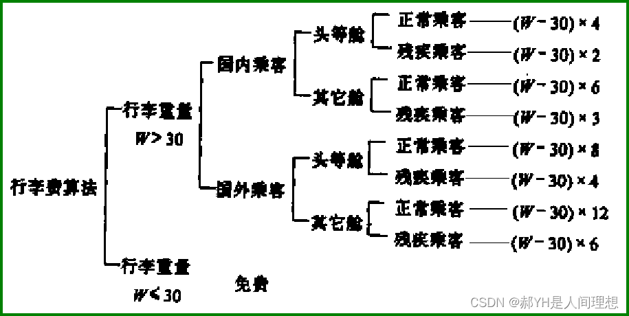7.判定树:判定表变种,表示复杂条件组合与应做动作间对应关系
