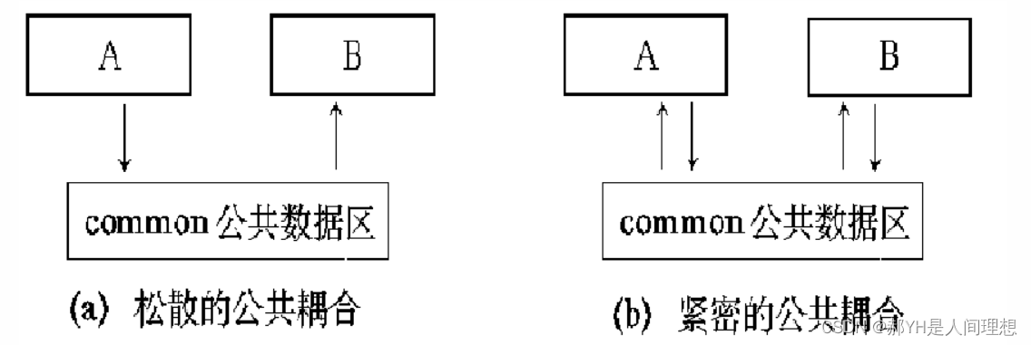 - 公共环境耦合:两个或多个模块通过一公共数据环境作用。