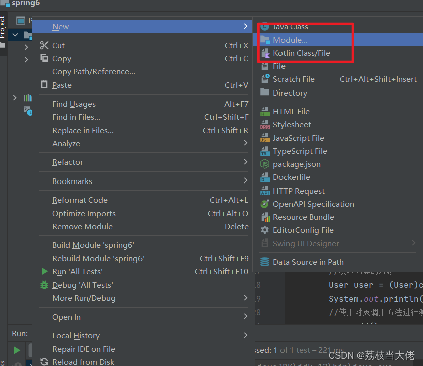 创建好后可以选择创建子项目,这里荔枝是打算练手所以就创建了子项目。也是类似的操作,依次选择New——Module来创建子项目,确定好对应配置即可。