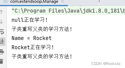 - 方法重写/覆盖的目的:父类里面设计好了几个方法,在子类里面也要用,但是从父类继承过来的方法,它的功能在子类中已经不适用了/不能满足子类的需求(父类功能不能满足子类需求),但是整个方法的定义还是相同,只是去修改它的功能。