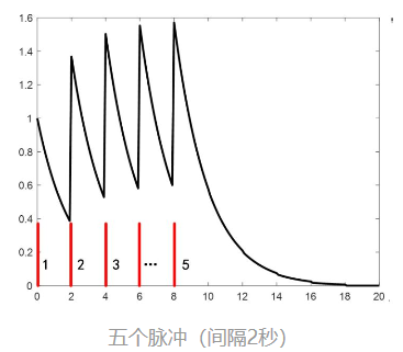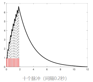 如果继续按每隔2s的频率给它冲激响应,就会变成下面这个样子: