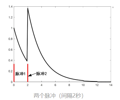 下面我们来看另一种情况:假设这个系统在恢复的过程中(比如说第2s)又收到一个一样的冲击,那么,它就变成这样了: