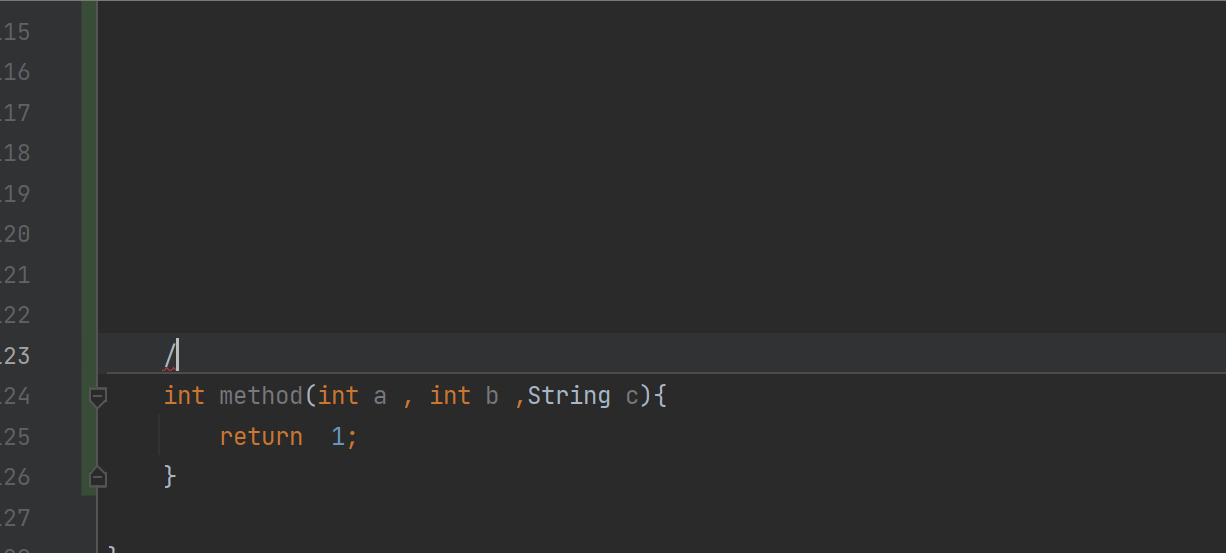 5、测试: 创建一个普通方法,方法顶部输入: " /** " 后,再按 Enter 回车键,即可快速生成方法注释模板。