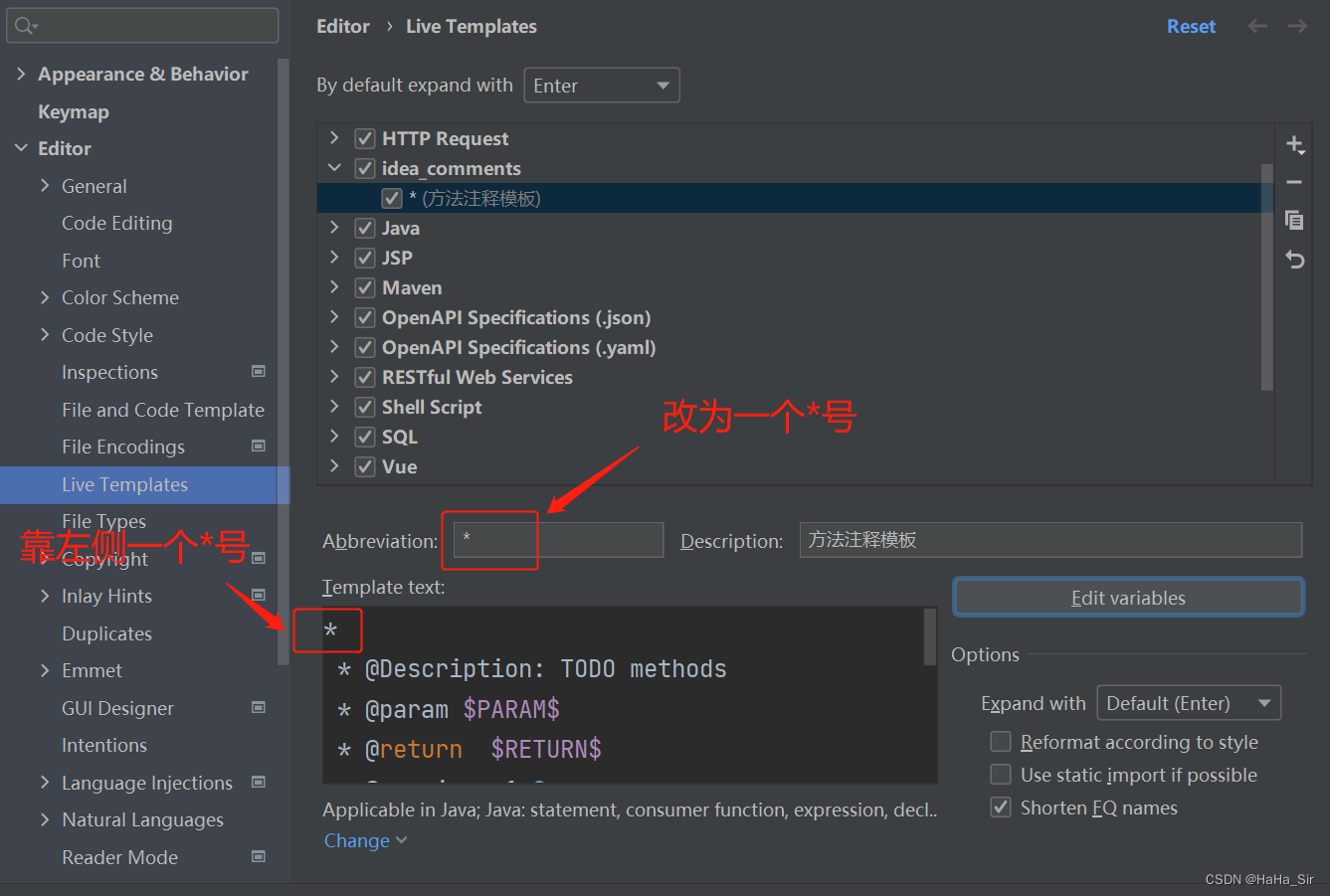 Idea 设置方法注释模板 Idea 2021.2配置方法类注释模板