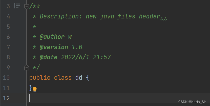 2.2、新建 java 文件,观察文件头的情况,效果如下: