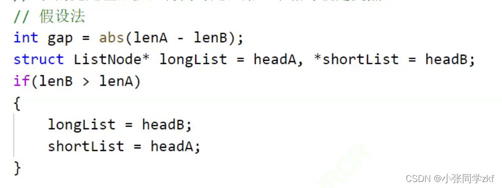 我们可以先创建一个变量来记录长的节点,另一个变量记录短的节点,然后假设长的就是第一个链表,短的就是第二个链表,再用if判断看两个变量需不需要互换,这样就不用管到底哪个链表长,哪个链表短
