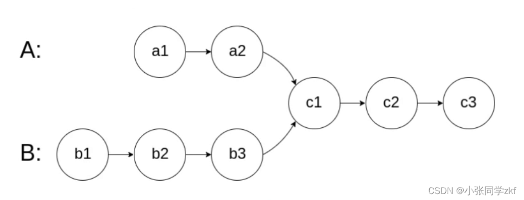 注意:这里尾结点判断是地址判断,不是值,值的话有可能出现俩链表尾结点值一样。