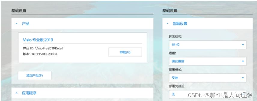 点击部署,开始安装软件。如图,现在显示学长只安装了Microsoft Office的Visio2019,其实三件套的2019学长也安装过,不过之前因为一些错误被迫卸载了,今天就和大家一起来重新安装一下(卸载同安装互为逆向操作,比如上图同时支持卸载已经安装的Visio2019)