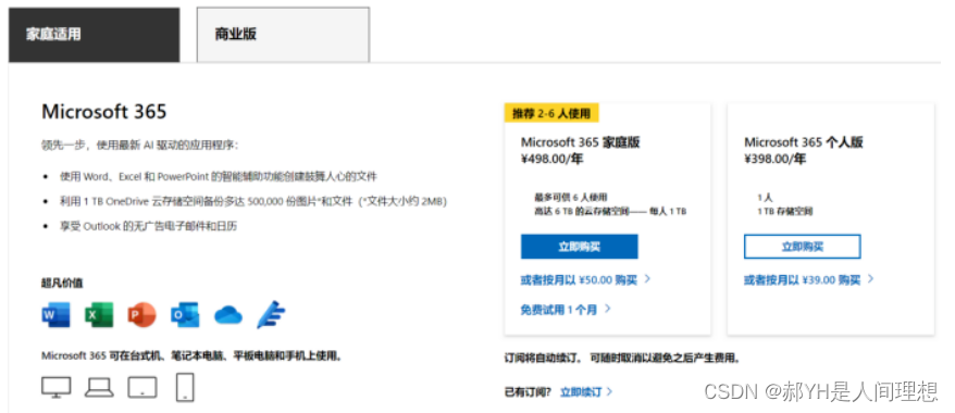 可以看到,官网上的正版office组件是需要购买的,不过大家的电脑都会预装word、office、excel三款基本工具,登录微软账户可以直接免费登录(部分电脑还预装有Access)。不过大家要千万注意,千万不要轻易卸载Office哦,他们预装在C盘里面,不要随意更改他们(学长亲身经历的痛)。