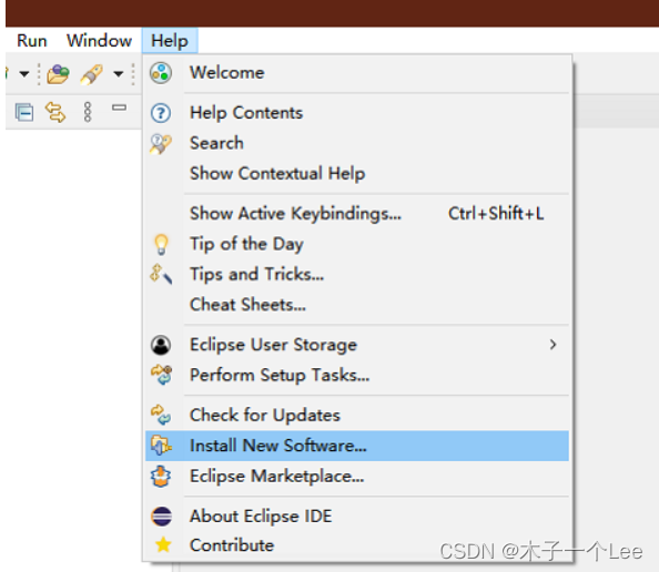 首先到eclipse IDE中,点击 ‘Help’ > ‘Install new software…’
