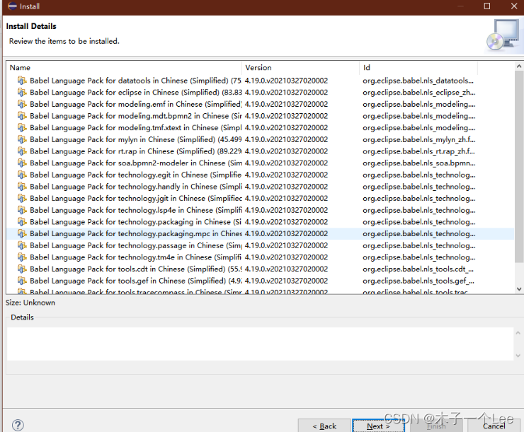 接下来会告知你将要安装哪些包,如果Next亮就点Next,如果Finish亮就点Finish。(根据Eclipse版本的不同,此处可能需要点击的是Next或者Finish,哪个可用就点哪个)
