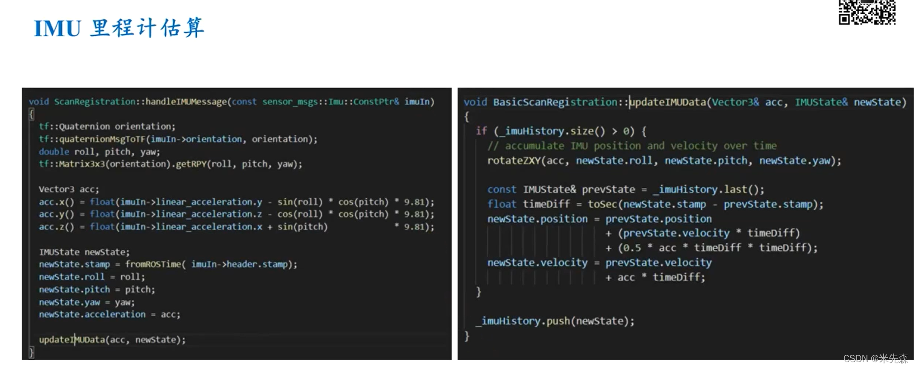 IMU 里程计估算 对应的LOAM 代码: