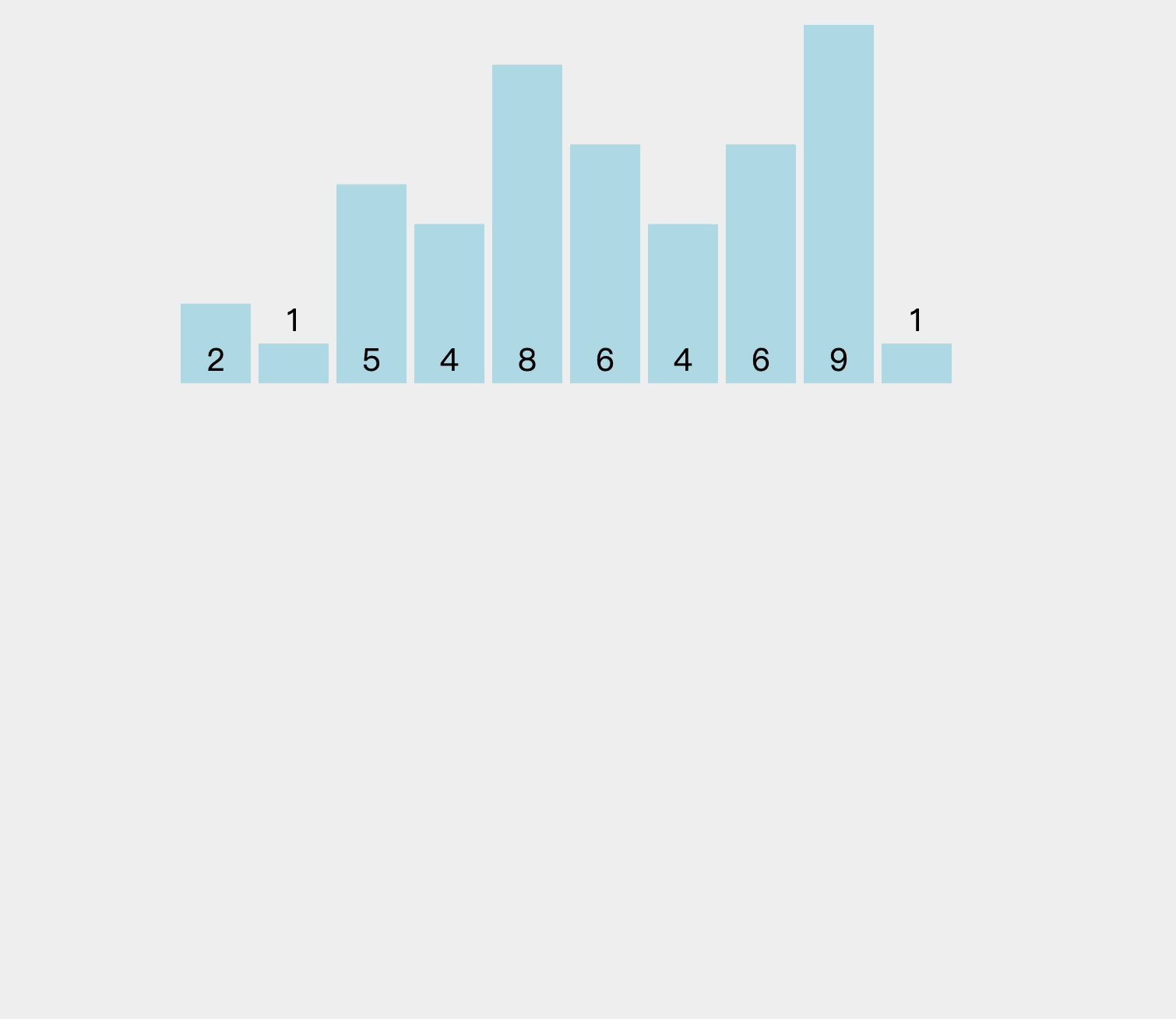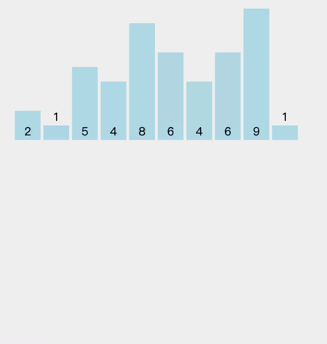 然后依次遍历原数组,根据重定位,将原数组的元素减去最小值去对应临时数组的下标,并对这个下标里的元素