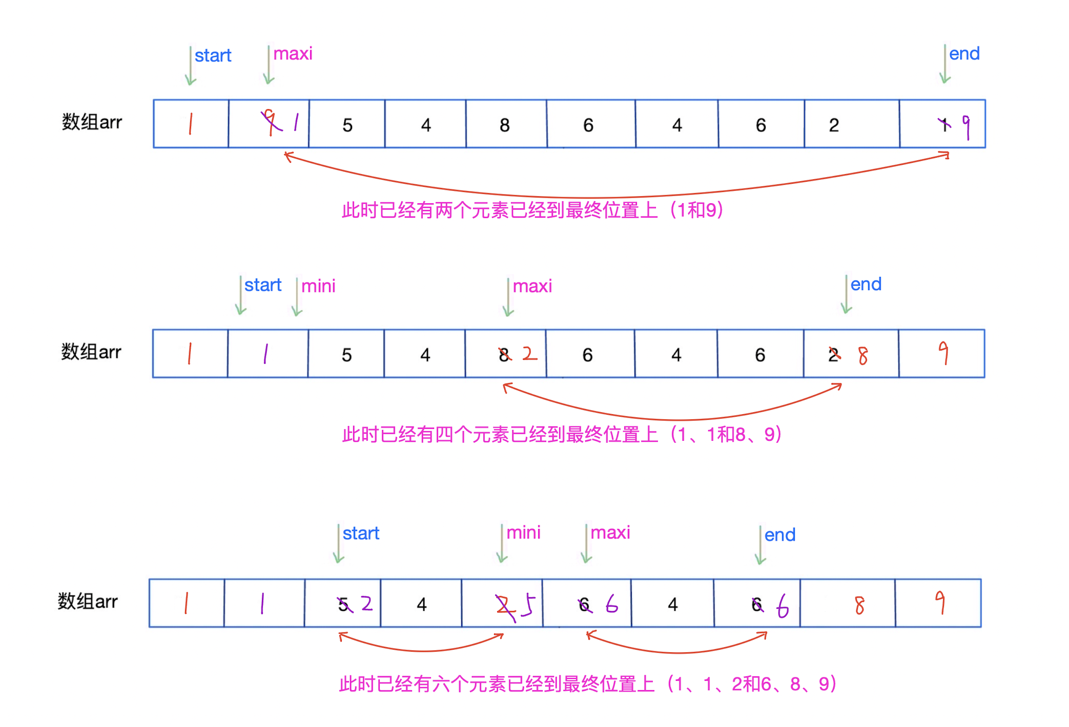 - 确定了2个元素的最终位置: