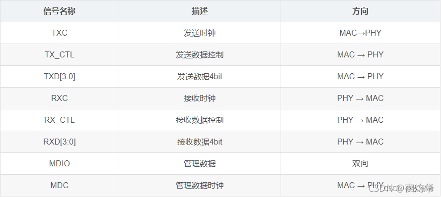 - TX_ER和TX_EN复用,通过TX_CTL传送