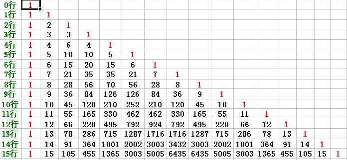 【问题分析】观察上图,大家不容易找到规律,但是如果将它转化为下图,不难发现杨辉三角形其实就是一个二维表的小三角形部分。