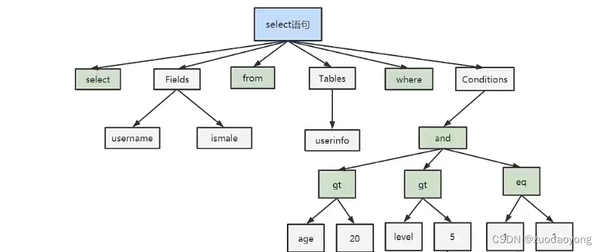 如果SQL语法正确,会生成一颗语法树