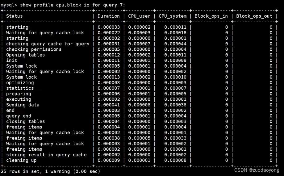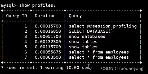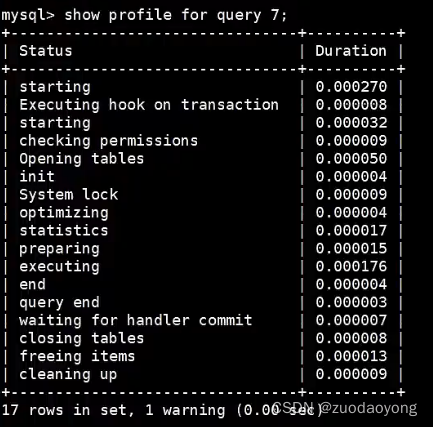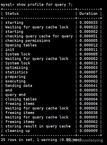 SQL执行需要使用的资源是怎么样的,可以通过profiling在MYSQL中对一条SQL语句的执行进行分析