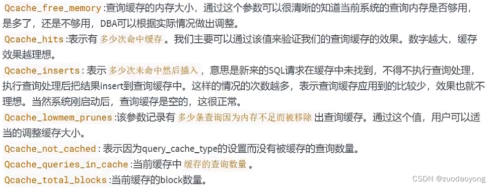 监控查询缓存命中率,使用如下参数
