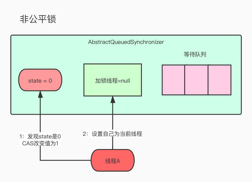 那非公平锁就是,敖丙过去买早餐,发现大家都在排队,但是敖丙这个人有点渣的,就是喜欢插队,那他就直接怼到第一位那去,后面的鸡蛋,米豆都不行,我插队也不敢说什么,只能默默忍受了。