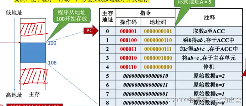 这样可以使用直接寻址就可以完成,主存地址为0,指令的形式地址为5,则直接指向主存地址为5的地方,但是如果程序从地址100开始存放