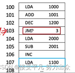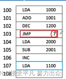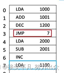 JMP:无条件转移把PC的内容改成7;无条件转移指令类似于C语言中的goto;