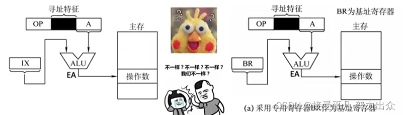 注:变址寄存器是面向用户的,在程序执行过程中,变址寄存器的内容可由用户改变(IX作为偏移量),形式地址A不变(作为基地址)。
