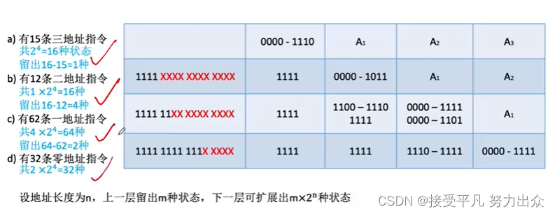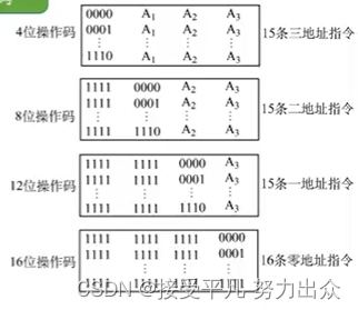 1111 1111留作扩展操作码之用,二地址指令为15条;