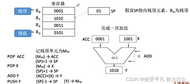 2.堆栈计算机,两个操作数隐含存放在栈顶和次栈顶,计算结果压回栈顶