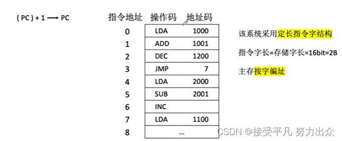 (PC)+“1”->PC:这里的1理解为1个指令字长,实际加的值会因指令长度,编址方式而不同;