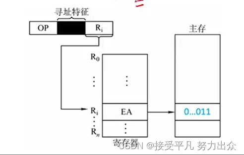 寄存器寻址:在指令字中直接给出操作数所在的寄存器编号,即EA=Ri,其操作数在由Ri所指的寄存器内。