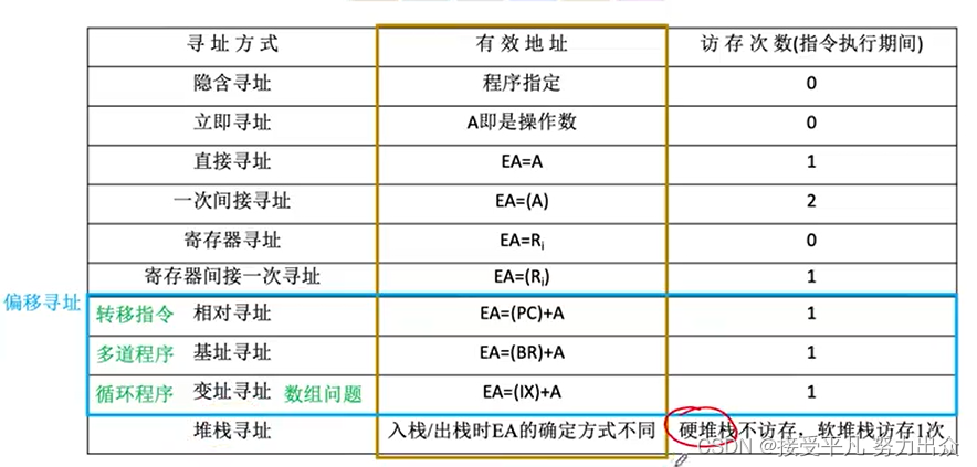立即寻址:形式地址A就是操作数本身,又称为立即数,一般采用补码形式。#表示立即寻址特征。一条指令的执行:取指令 访存一次。执行指令 访存0次。暂不考虑结果,共访存一次。