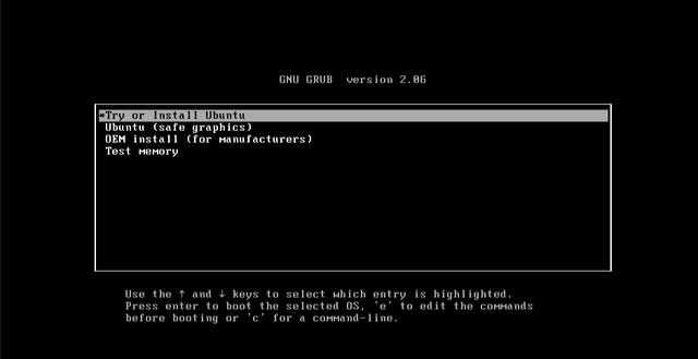 插入 Ubuntu U 盘并打开机器。 如果计算机自动引导了启动 U 盘,请跳过下一步;否则,请在引导菜单或 BIOS/UEFI 中手动选择启动 U 盘进行引导。