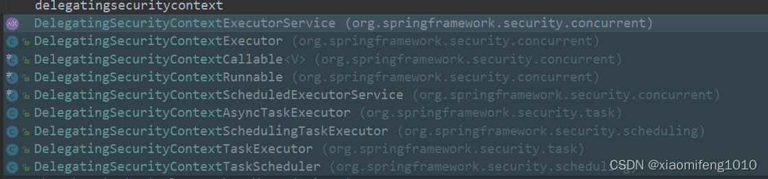 去掉DelegatingSecurityContext前缀,就是这些类实现的对应JDK中的接口。比如 DelegatingSecurityContextExecutor就是实现了Executor接口,依次类比。
