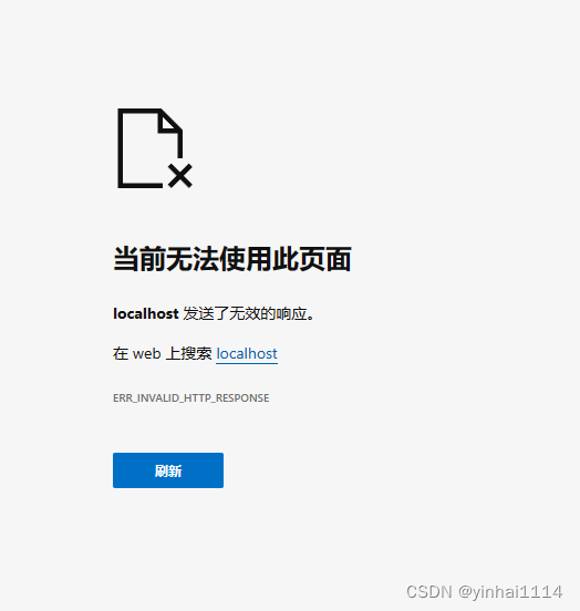 localhost 发送了无效的响应。qq浏览器 谷歌浏览器 edge都出现该问题,均能链接到程序但是无法显示