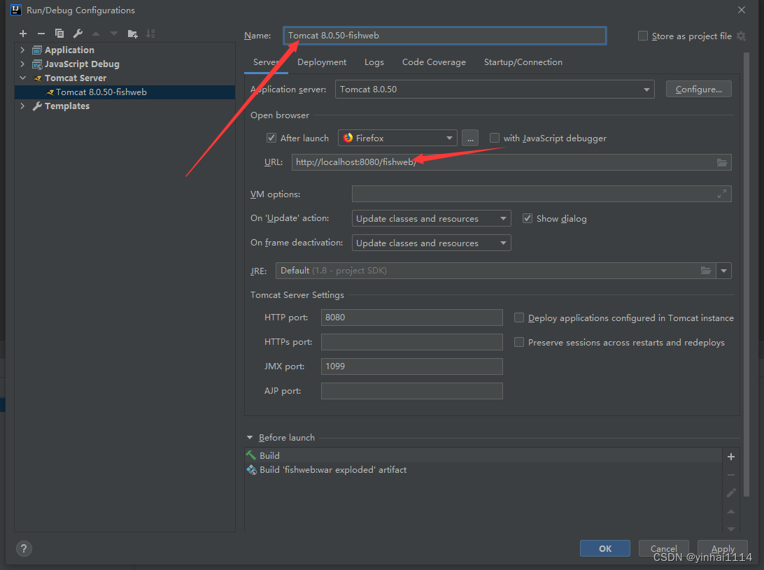 (1) on update action :表示当我们更新操作是, Tomcat会自动更新类和资源(当jsp/html文件修改时可以生效)