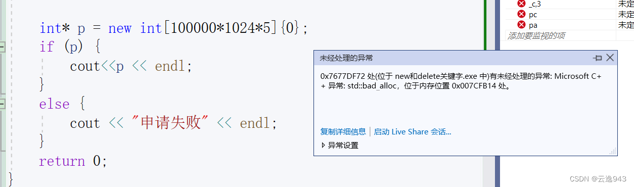 new失败不会有返回值,会抛出异常!