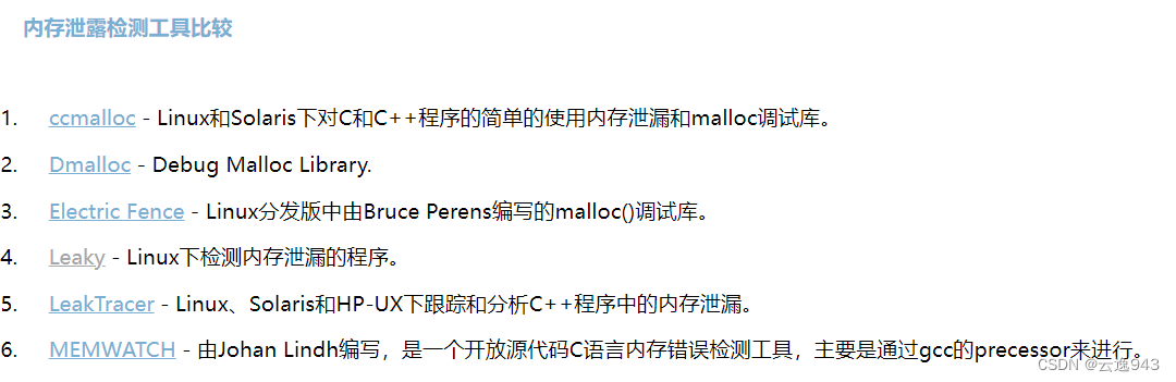 3. 有些公司内部规范使用内部实现的私有内存管理库。这套库自带内存泄漏检测的功能选项。