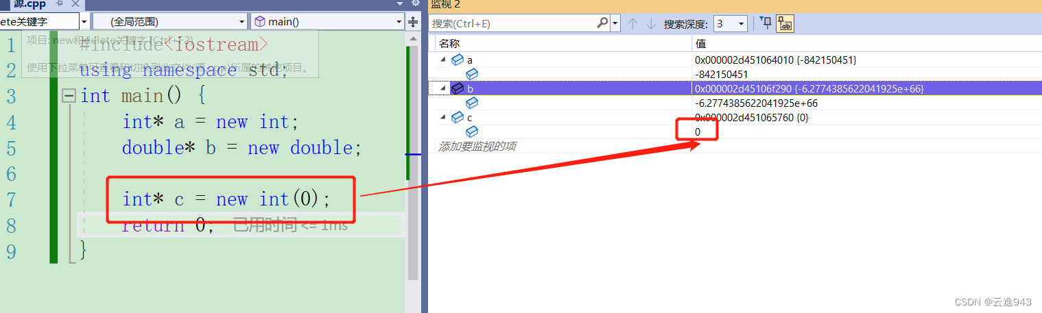 new使用格式1:动态开辟一个数据的堆区空间