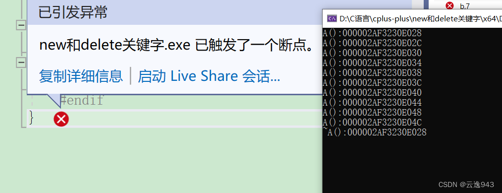 但若是自定义类型,例如:A* p=new A[100]; 使用delete p; 语句就会发生内存泄漏,导致运行报错,系统崩溃!!!
