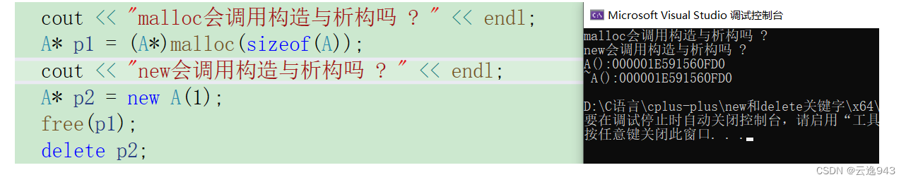经过验证发现:new和delete关键字会自动调用类的构造函数和析构函数。