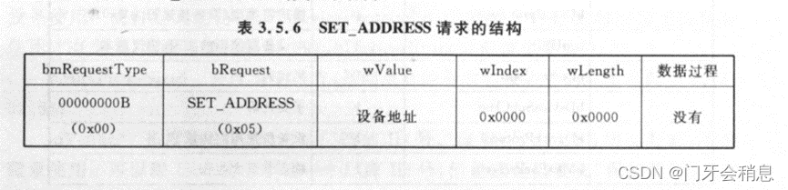 2:主机对设备进行再一次复位,进入设置地址阶段。USB主机往地址为0的设备的端点0发出一个设置地址的请求,新的设备地址包含在建立过程(SetUp)的数据包中。