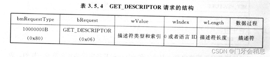GET_DESCRIPTOR:主机通过发送获取描述符请求来读取USB设备的各种描述符。GET_DESCRIPTOR请求结构如下